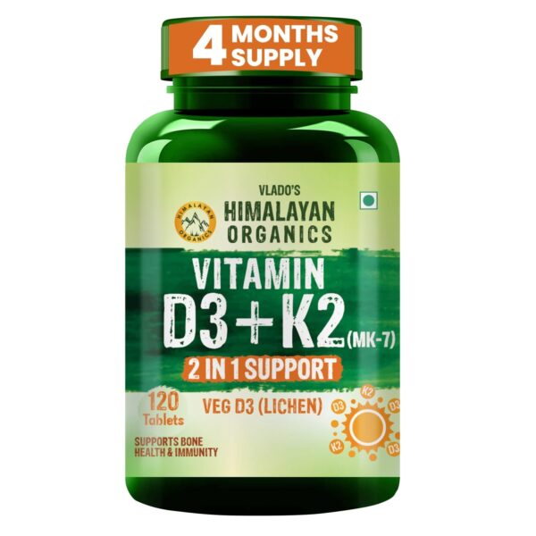 Vlado’s Himalayan Organics Vitamin D3 600 IU + K2 (MK-7) Supplement – Supports Stronger Immunity, Bone & Heart Health – For Men & Women – 120 Veg Tablets – Available in the United Kingdom via www.mycosmedics.uk
