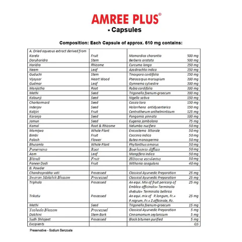 The power of Amree Plus lies in its carefully selected Ayurvedic herbs and nutrients. Each capsule is enriched with a combination of natural extracts that synergistically improve metabolic health. Some of the key ingredients include: