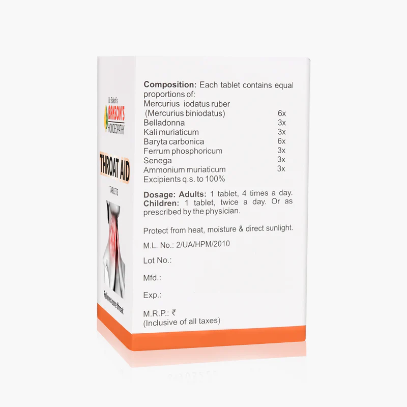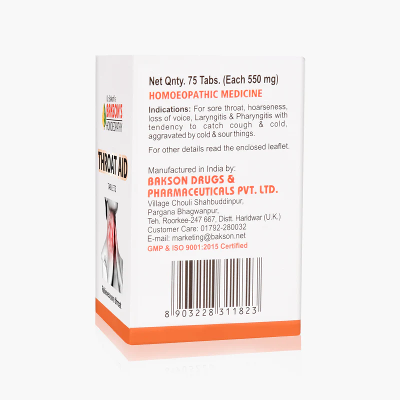 Bakson Throat Aid Tablets contain a combination of carefully selected homeopathic medicines such as: