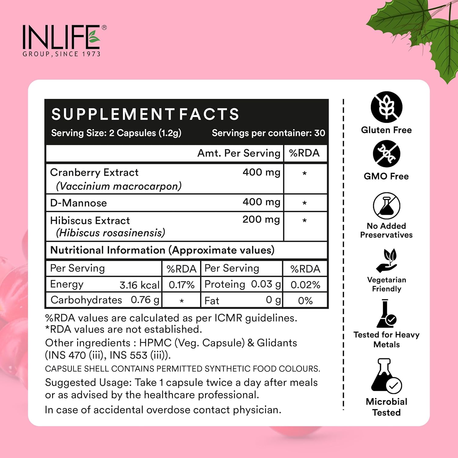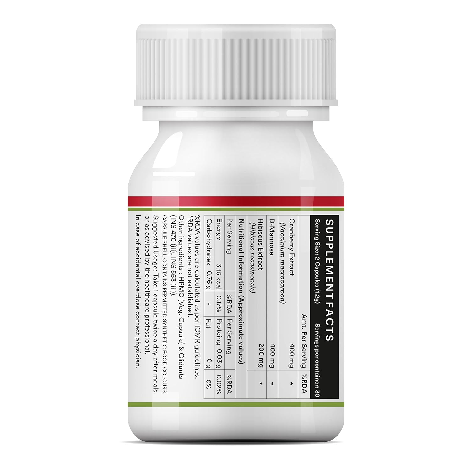 Ingredients: Cranberry Extract, D-Mannose, Hibiscus Extract