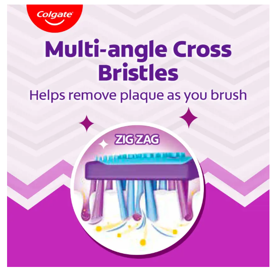 The Colgate ZigZag Medium Bristle Toothbrush is crafted with both performance and comfort in mind. The angled zigzag bristles target every contour of your teeth to remove plaque effectively. Each bristle strand is designed to clean between teeth and along the gumline, areas where standard toothbrushes often miss.