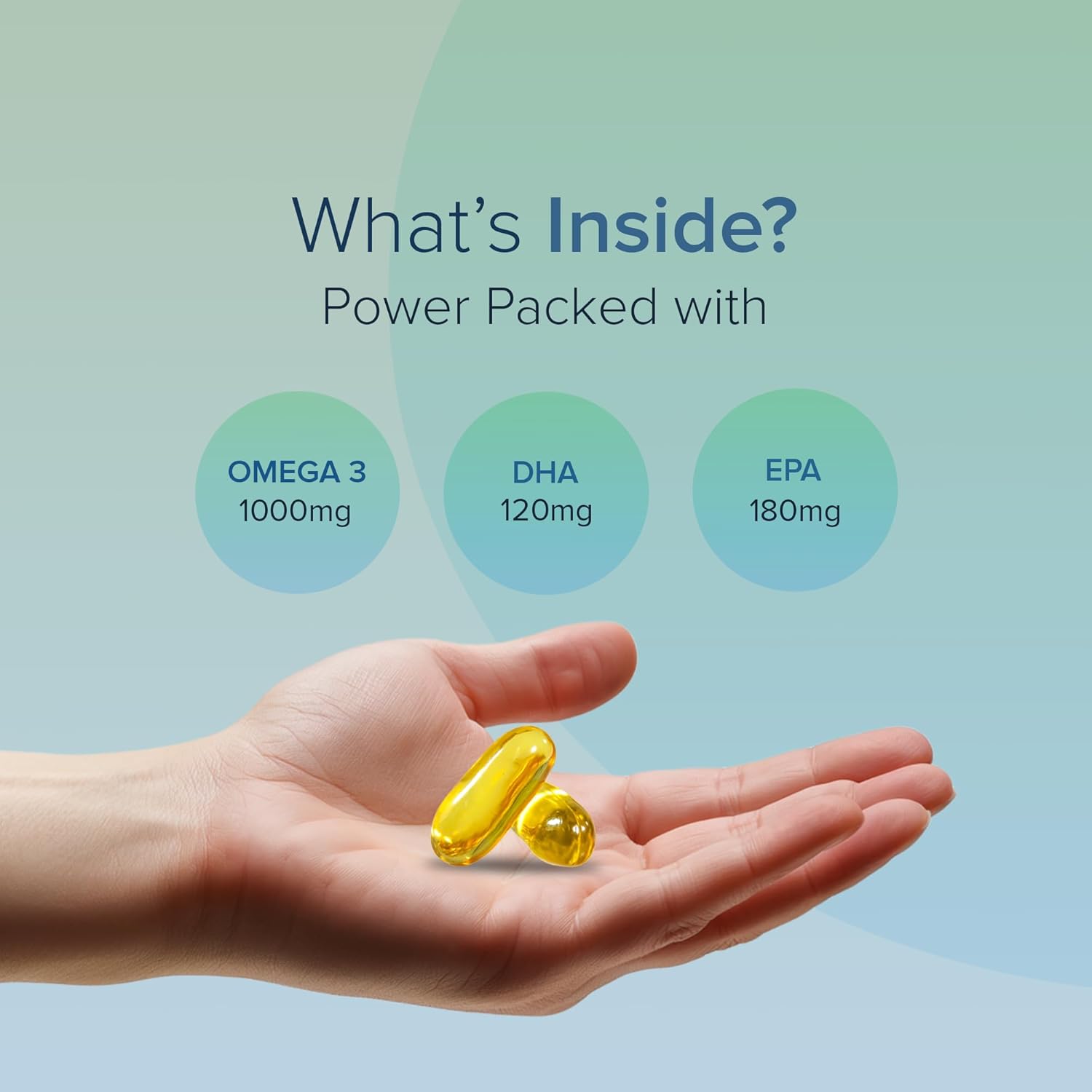 Each capsule delivers 180 mg EPA (eicosapentaenoic acid) and 120 mg DHA (docosahexaenoic acid). This balanced formulation is targeted to support cardiovascular, cognitive, ocular, and joint wellness.