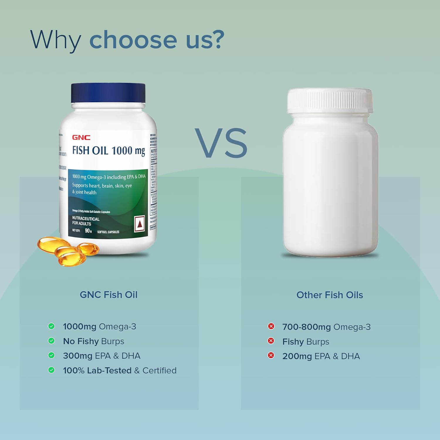 Welcome to MyCosmedics.uk, your trusted source in the United Kingdom for premium health and wellness supplements. We are proud to present GNC Fish Oil 1000 mg, a meticulously formulated omega-3 dietary supplement providing 180 mg EPA + 120 mg DHA per capsule. This powerful blend is designed to deliver wide-ranging benefits for heart health, brain function, joint mobility, and visual support — all while offering a clean, fishy-aftertaste-free experience via its enteric-coated formulation.