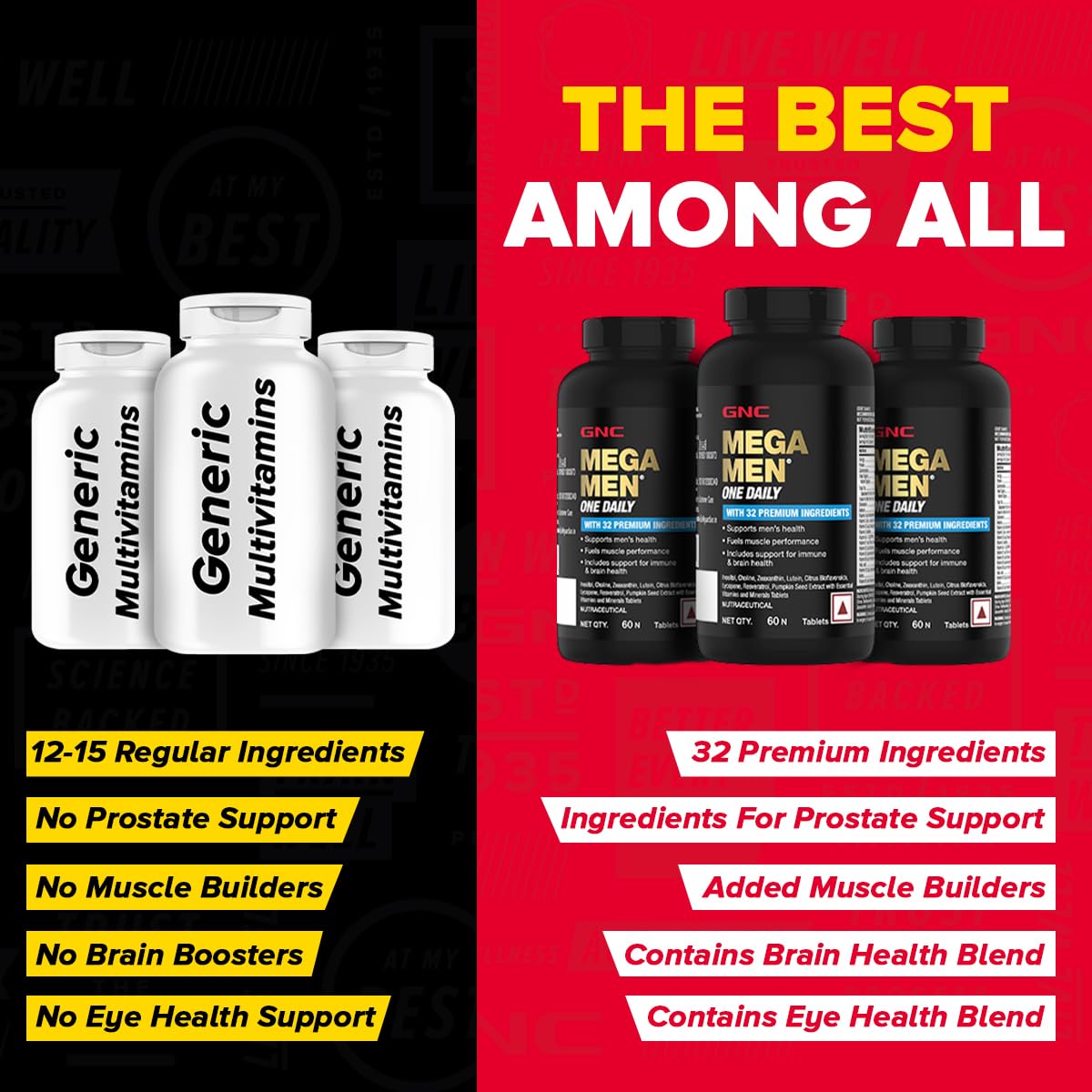 GNC Mega Men One Daily Multivitamin | 60 Tablets | 32 Premium Ingredients | Supports Immunity, Memory, Muscle & Well-Being in the United Kingdom – available at www.mycosmedics.uk