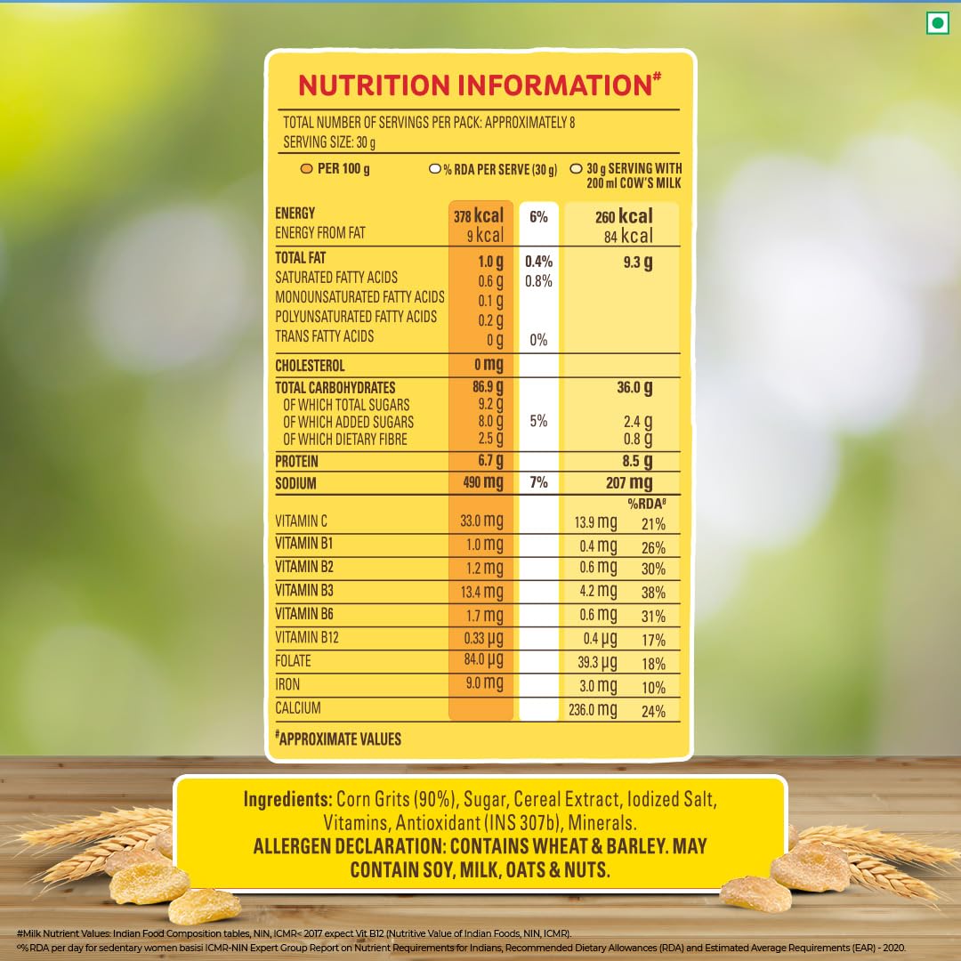 Packed with Protein, Iron, and Calcium, along with essential Vitamins B1, B2, B3 & C, this cereal supports energy metabolism, immunity, and bone health.