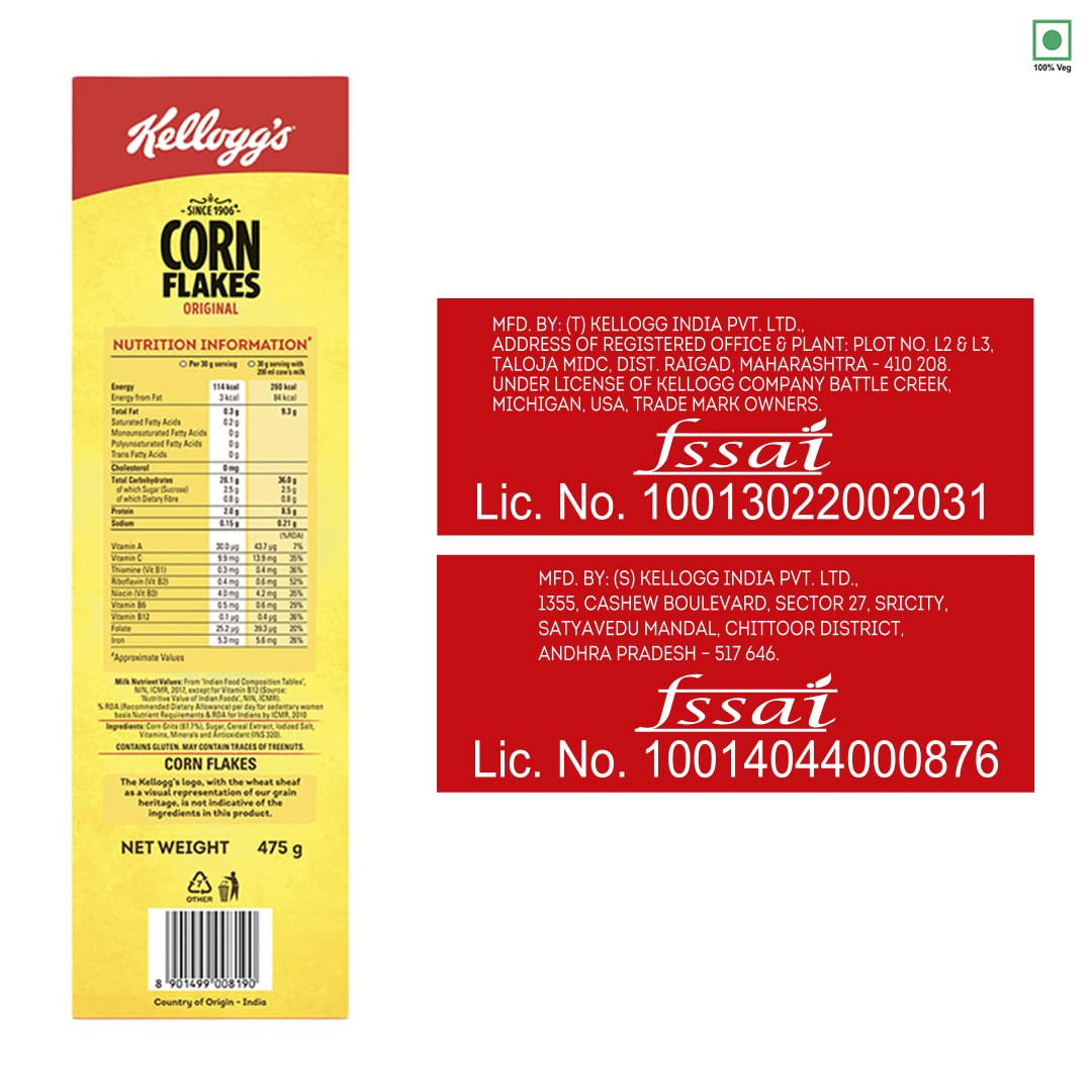 Made from the finest golden corn and fortified with essential vitamins and minerals, Kellogg’s Corn Flakes provide the perfect balance of taste, health, and convenience. Every bite gives you the Power of 5 – Energy, Protein, Iron, Calcium, and Vitamins (B1, B2, B3 & C) – to keep you active and nourished all day long.