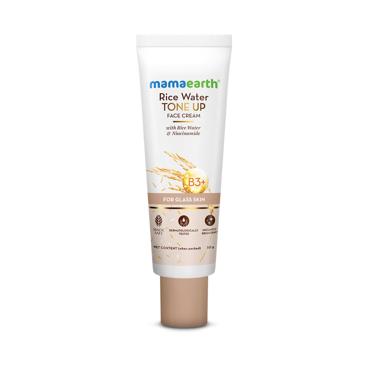 MADE SAFE APPROVED Tone-up, worry-free! Mamaearth Rice Water Tone Up Face Cream is Made Safe Approved. This means no toxins, only natural goodness!