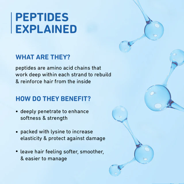 Peptides help strengthen hair strands and stimulate hair follicles. They also add volume to hair and give a silky-smooth finish.