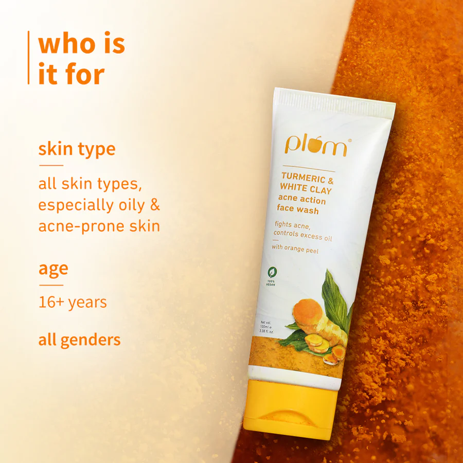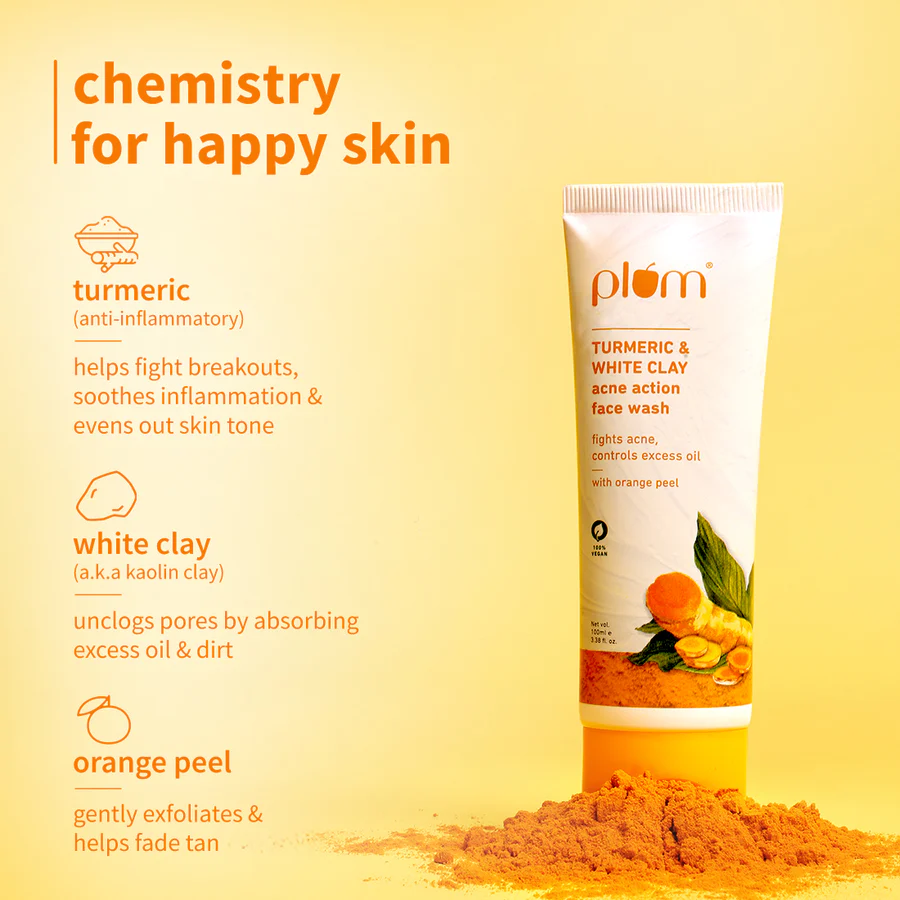 Loaded with the ultimate goodness of Turmeric, White Clay & Orange Peel, this face wash works wonders on acne and controls excess oil by flushing out dirt, impurities and unclogging pores. Hello, clear skin!