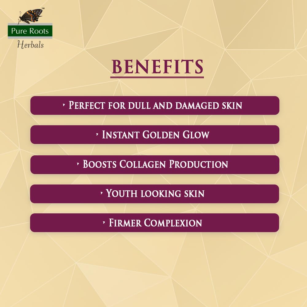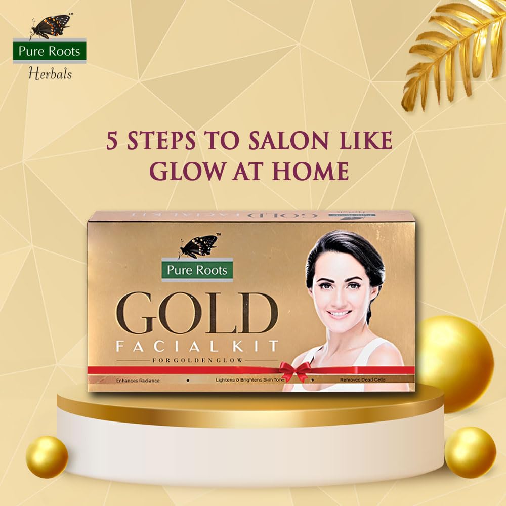 The Pure Roots Herbals Gold Facial Kit, enriched with gold dust and hyaluronic acid, is the perfect facial kit for men and women seeking a salon-like glow at home. This gold facial kit for men and women brightens, nourishes, and rejuvenates dull and damaged skin, leaving you with a youthful, radiant complexion. For both men and women, this facial kit for women and men is your go-to solution for achieving glowing, healthy skin effortlessly.
