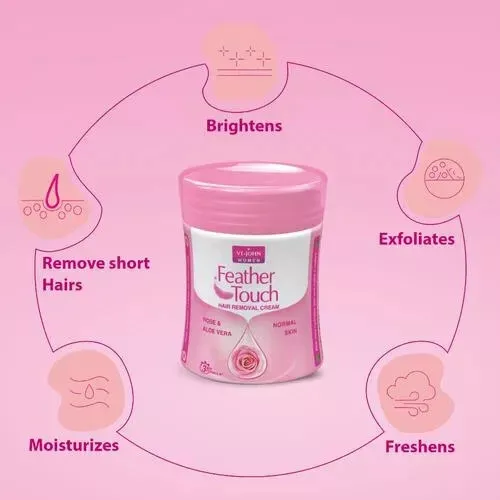 Vi-John Feather Touch Woman and Girls Hair Removal Cream is enriched with Rose & Aloe Vera that has a soothing effect and Vitamin E with 3 Min Formula. The Hair Remover Cream removes unwanted body hair with ease and is perfect for delicate skin. VI-John hair removal cream is designed to remove smooth even the tiniest hair. Feather Touch is excellent for use right away and works closely with the hair’s root to give you outstanding, long-lasting smoothness. It leaves the skin clear, spotless, and incredibly soft. The added benefit of fairer skin is provided by its natural components. Ditch the painful wax hair remove method and switch to the pain-free salon at home-like feeling with the VI-John feather touch hair removal cream. Made for sensitive skin it eases the hair-removing process and does not dry skin. No rashes, no redness, no itching only smooth skin within minutes. VI-John women’s hair removal cream is designed to remove even the tiniest hair. Comes in a tube form, it is spill free and can be carried if needed. It also has aloe Vera that helps to lighten dark skin while keeping it hydrated and soft looking. Get dewy smooth water gliding skin with the VI-John feather touch hair removal cream for women. Best women hair remover cream for Removes short hair from legs, arms, underarms and bikini line.